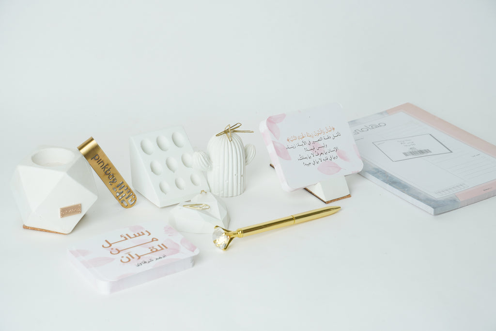اربع قطع مكتبيه مصنوعه يدويا من الكونكريت ( قد تحتوي على بعض الكراك حيث انها صنعت يدوياَ)
