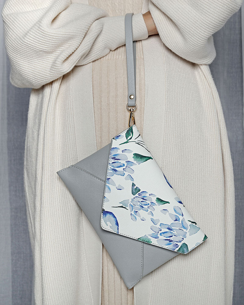 A Set of three individual envelopes which fit inside each other. The large pouch is perfect for an iPad Mini or everyday essentials, the medium one for a passport and the small one for cards or coins