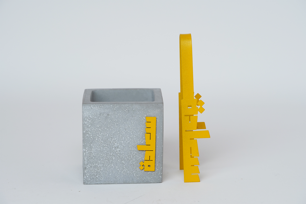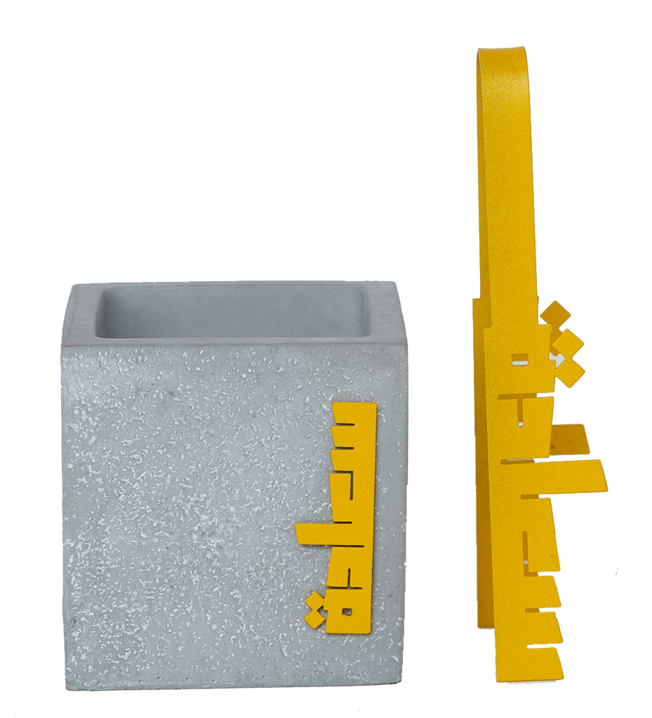 A handmade concrete mubkhar along with a yellow steel سعاده Coal Forceps